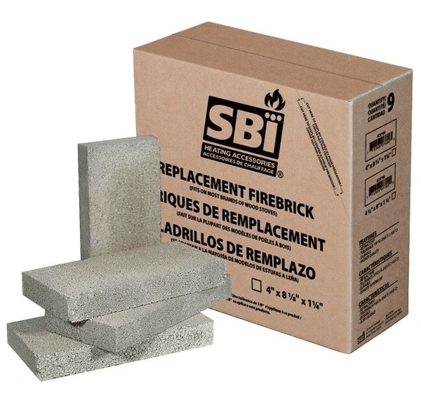 The Drolet 4 x 8 Inch Refractory Bricks – Pack of Nine includes nine high-density refractory bricks that can be used to line the firebox of wood-burning stoves. The bricks are able to fit most stove brands, making them a highly versatile choice for nearly any stove. Constructed from high-density refractory ceramic, these bricks are highly durable and heat resistant. This allows the bricks to both withstand high heat conditions and long-term repeated use without breaking down or sacrificing their performance. Be the first to review “Drolet 4 X 8 Inch Refractory Bricks – Pack Of Nine”LoginRegister |