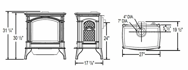 *Venting Requirements: This unit requires venting pipe with an inner diameter of 4 Inches. Please see the Venting Components section on this page if available for venting pipe that must be used with this unit. * Please Note: This unit may not be used for bedroom or bathroom applications if it has been converted to B-vent. With a Napoleon GDS60 Cast Iron Gas Stove with Direct Vent-B Vent it’s easy to add a touch of rustic charm to any home decor. With two finishes to choose from, you’ll have no problem creating a stove that will be at home with any decorating scheme. That is not to say, however, that no one will notice this attractive antique-style stove. Friends and family alike will be drawn to this cast iron furnace, with its unique burner system and wide glass viewing window. But don’t think that this gas stove is just for show. The GDS60 is a fully functional stove, capable of providing any room with additional heat. Capable of handling up to 35,000 BTUs, this stove features a secondary heat exchanger and conductive ceramic glass to maximize efficiency. You’ll notice an increase in temperature the moment you turn your stove on. And because electricity is not required for any part of its operation, this gas stove is a great resource during a power outage. As long as you’ve got natural gas or propane – this model offers you the convenience of choosing the fuel source that works best for you – you’ll have reliable and efficient heat. Also, unlike a traditional wood-burning stove which can be difficult to start and requires constant tending, using this gas stove is as simple. Just switch the power on, select your desired heat level, and your work is done. The Napoleon GDS60 Cast Iron Gas Stove with Direct Vent-B Vent is elegant, effective, and convenient. After just one cozy evening by the fire you’ll wonder how you ever did without this enchanting home accessory. Separately sold Thermostats, Remote Controls, and Timers available.