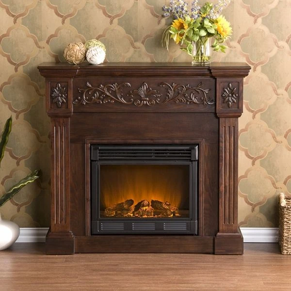 SEI 45 Inch Calvert Carved Electric Fireplace With Mantel