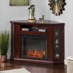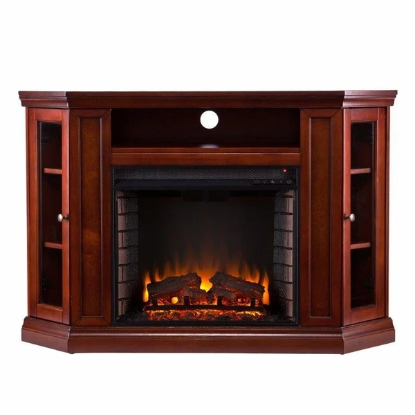 * Please Note: Do not leave fireplace running unattended. *Also Note: This fireplace does not shut off if tipped over. Bring entertainment back to your home with SEI. The SEI 48 Inch Claremont Convertible Media Storage with Electric Fireplace fits perfectly into corners that would otherwise get no use, leaving space for and endless possibilities. This fireplace mantel can hold up to a 46 inch flat screen television and has storage space for little extras. With four finishes to choose from this SEI unit will fit perfectly in any home.